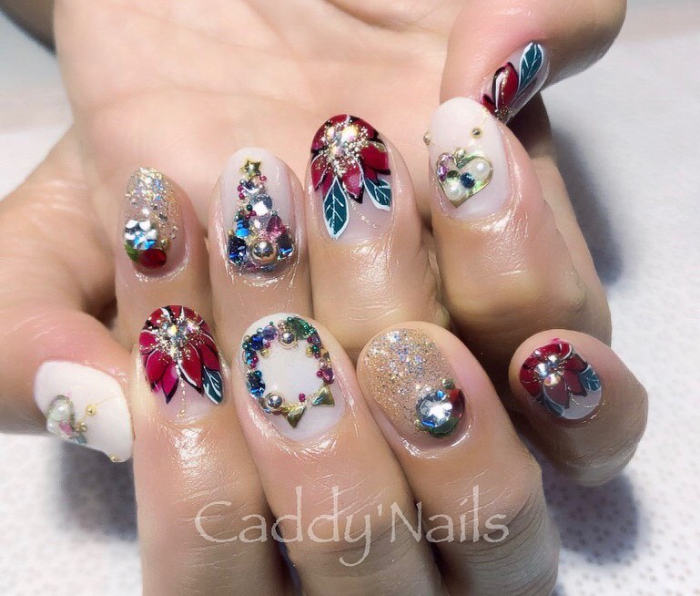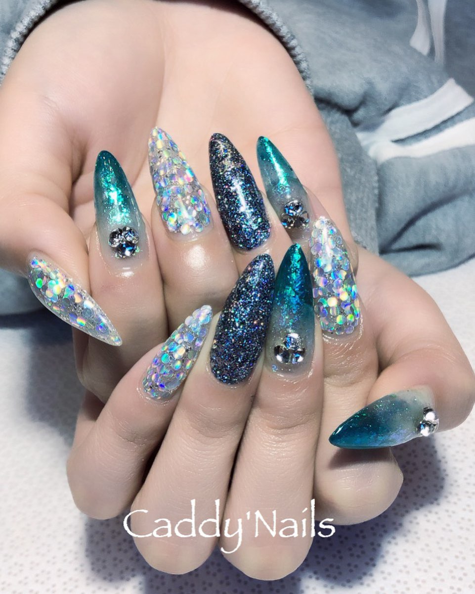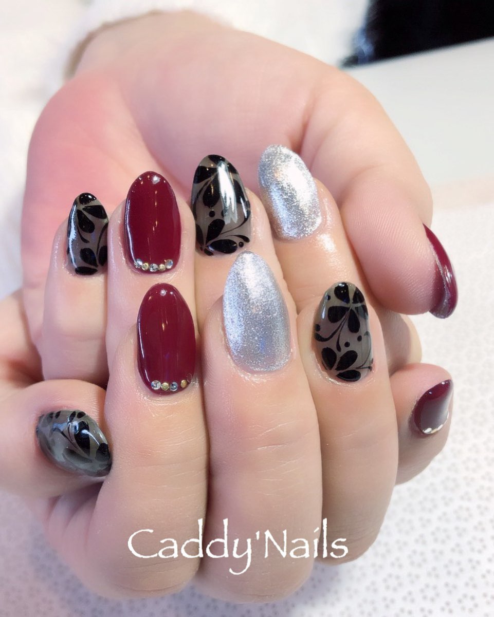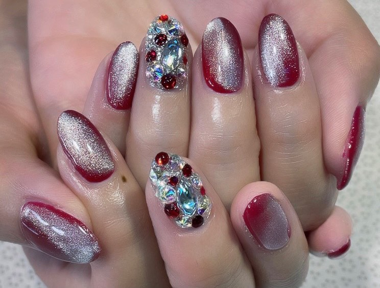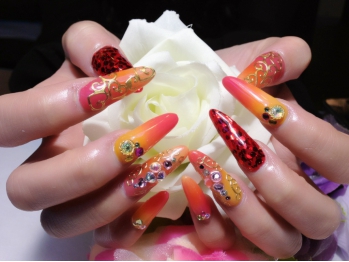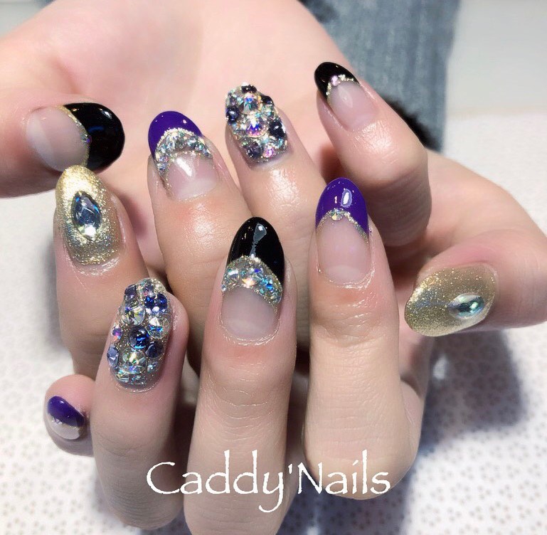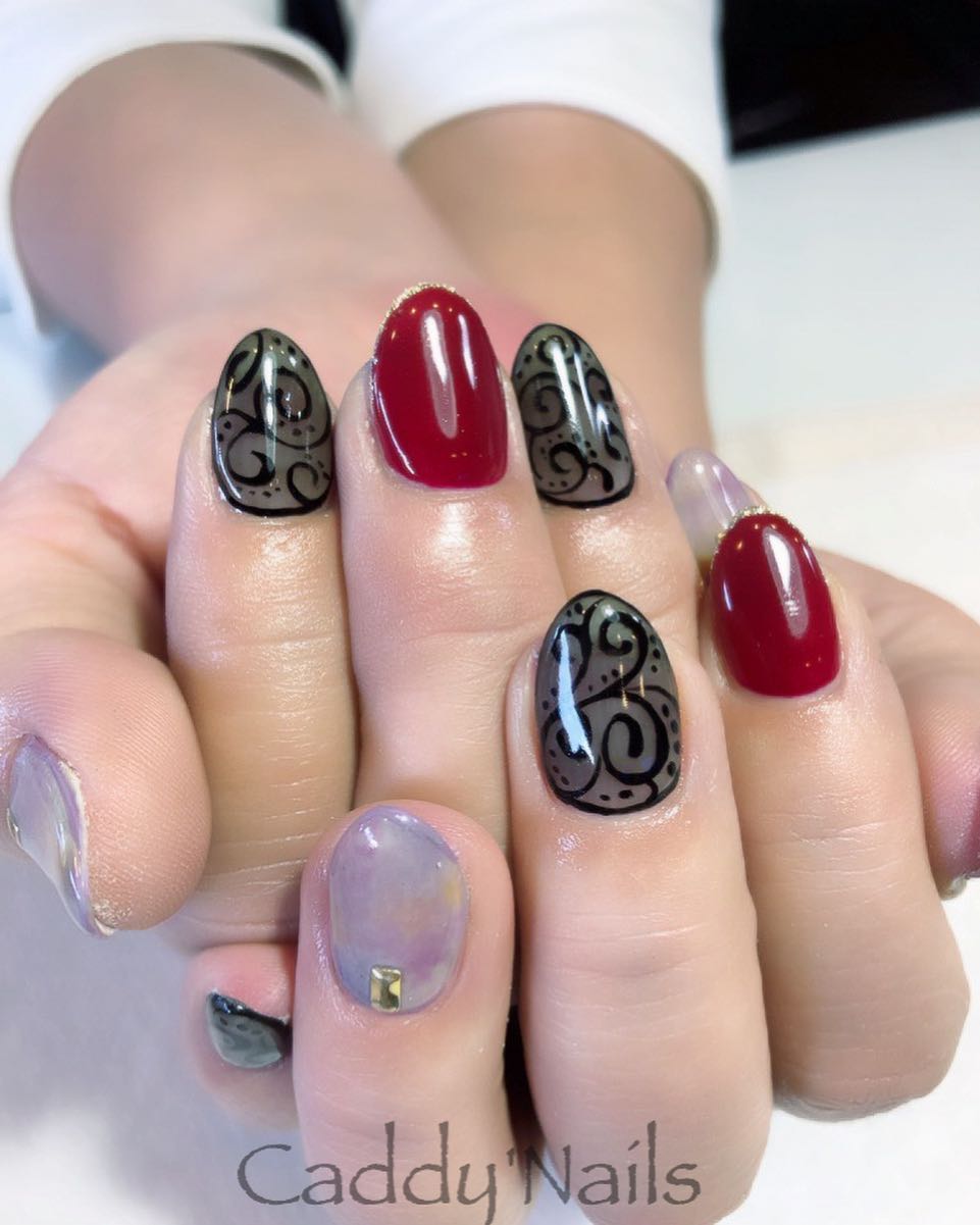 スカルプ3色グラデ8本+ホロ埋2本+ロココ4本+スワロ6本付