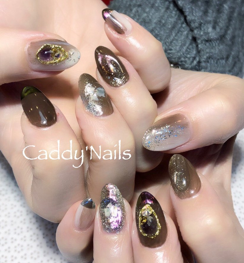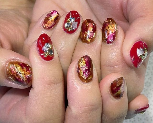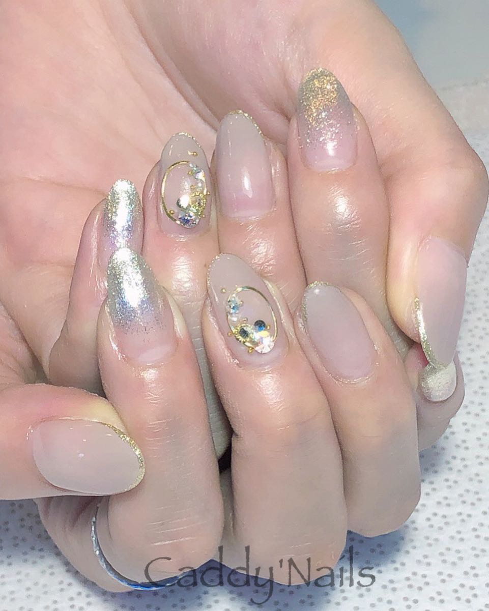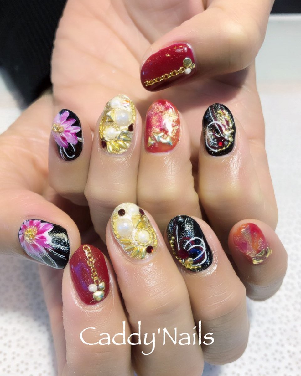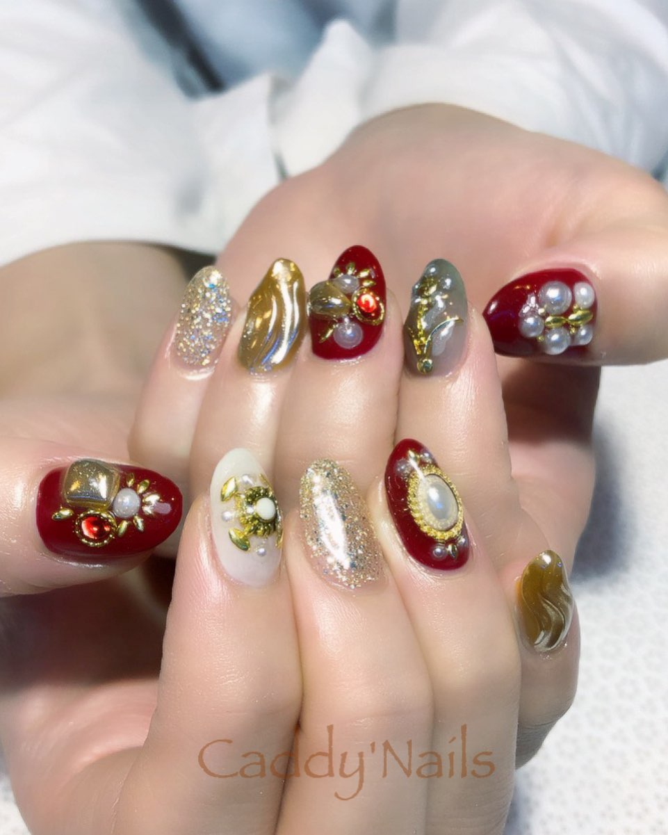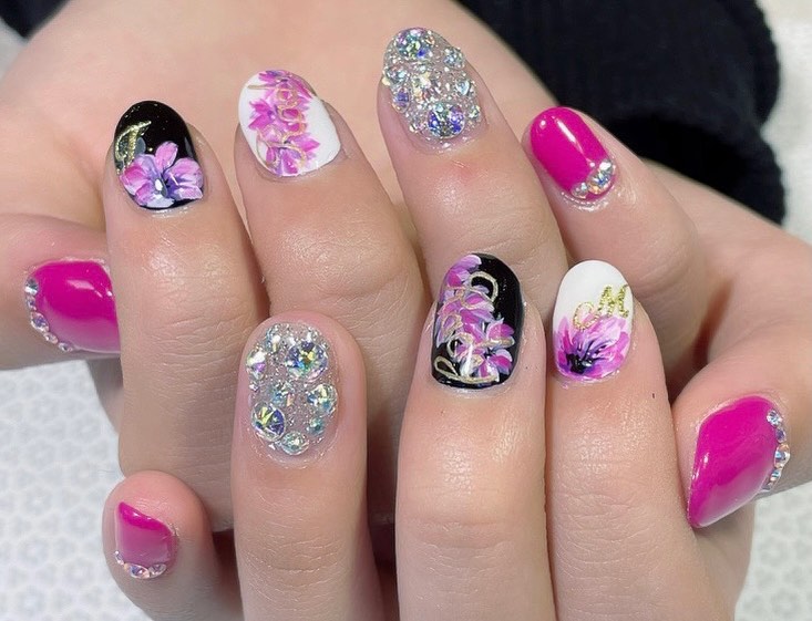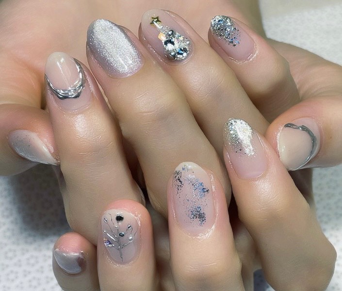 スカルプ3色グラデ8本+ホロ埋2本+ロココ4本+スワロ6本付