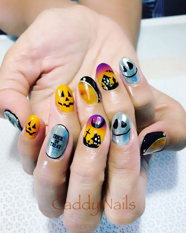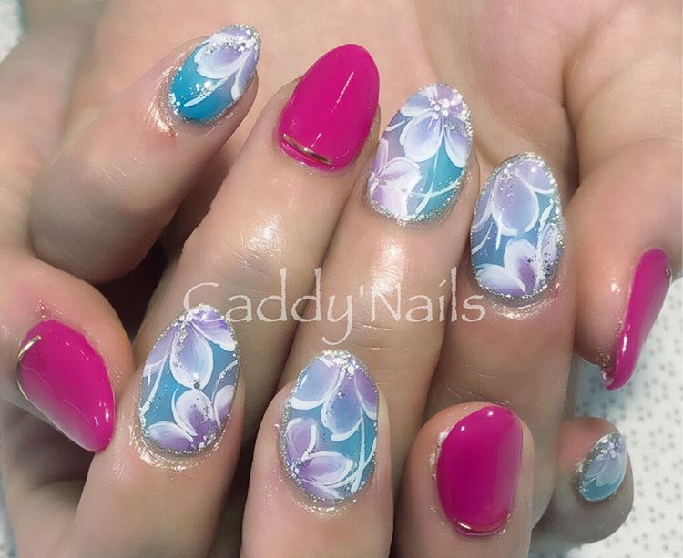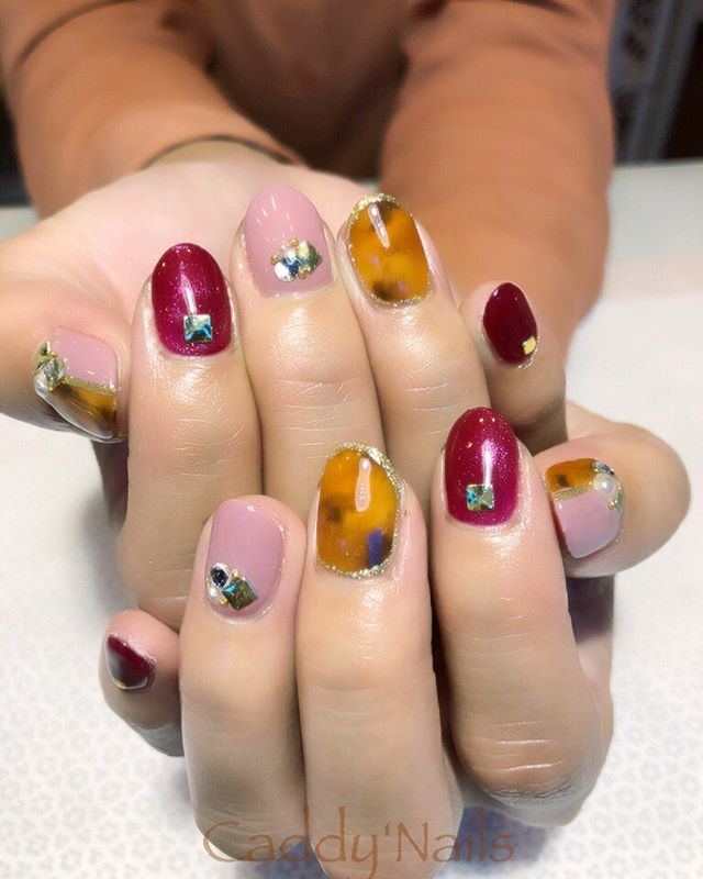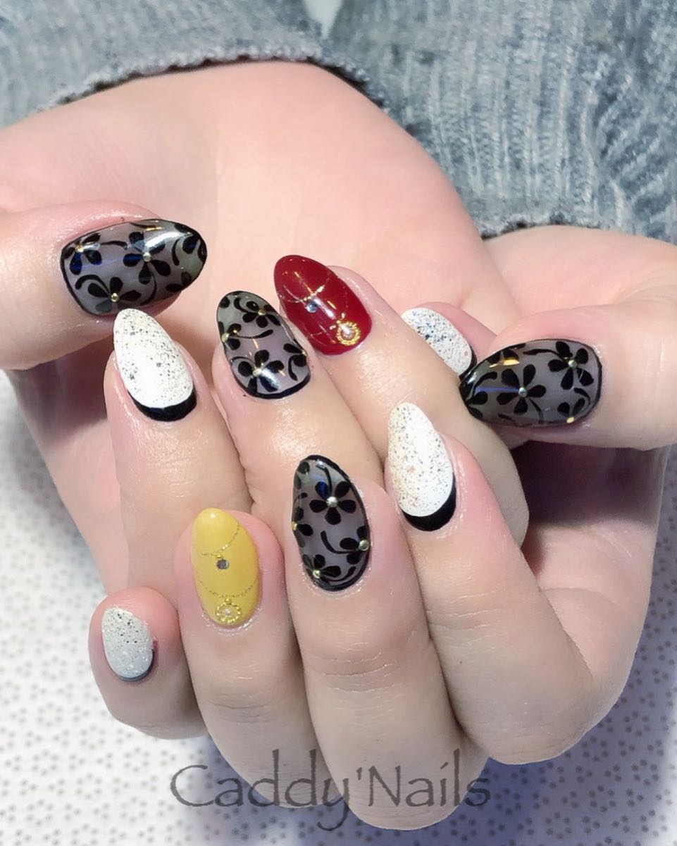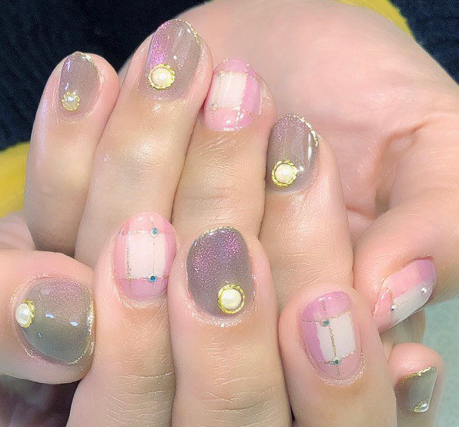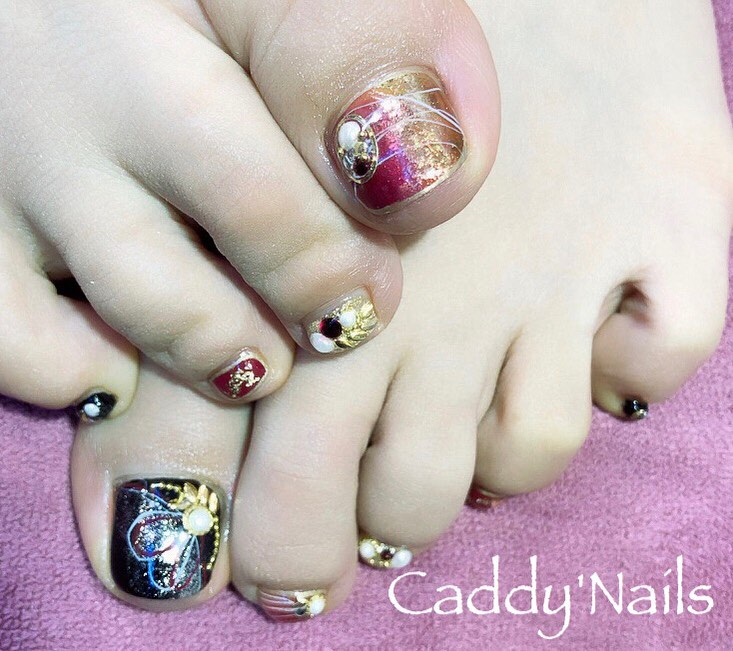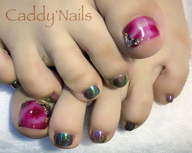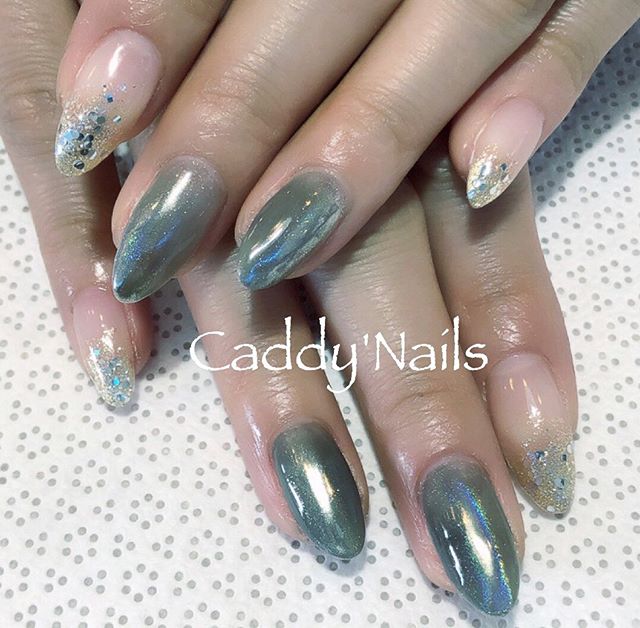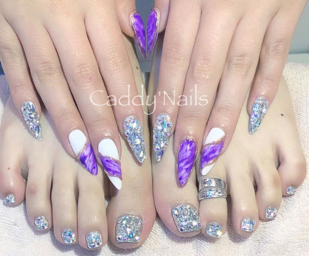 スカルプ3色グラデ8本+ホロ埋2本+ロココ4本+スワロ6本付