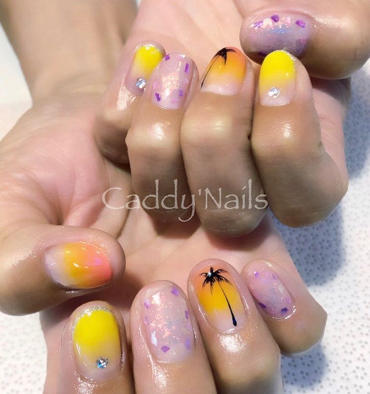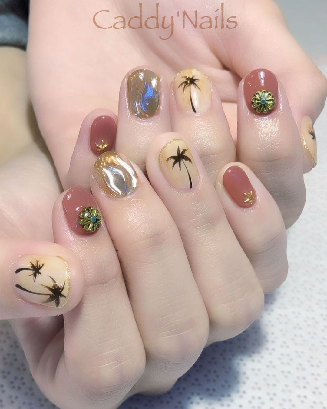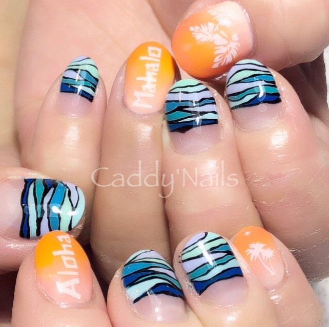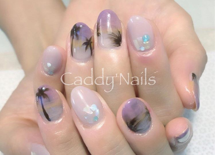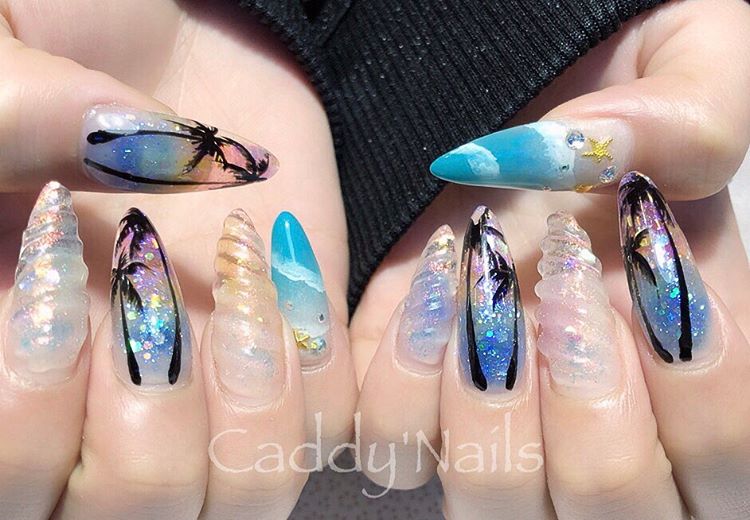 水面アート6本+グラデ+ヤシの木4本シェルスタッズ