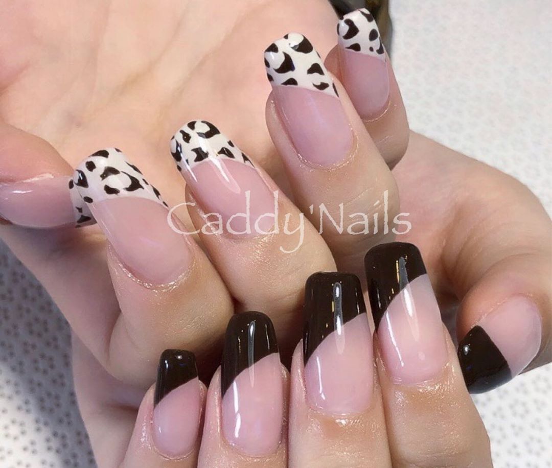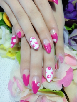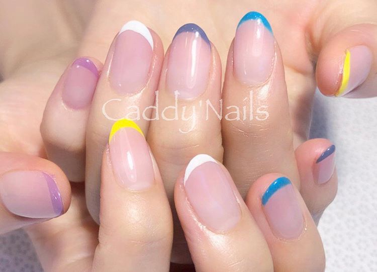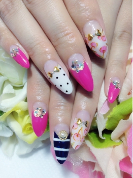 逆フレンチ+ダブルフレンチ+スプリットフレンチ+スワロ10粒