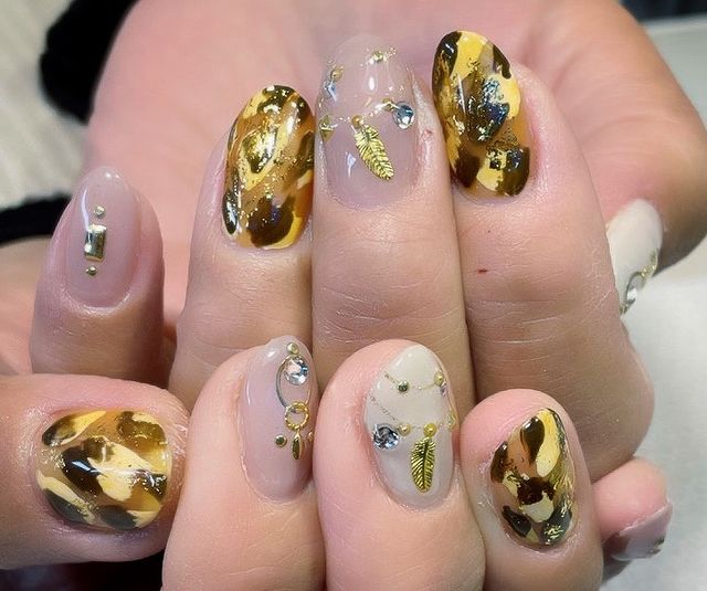 オフ別途 マーブルフレンチベース ボタニカルアートストーン付
